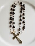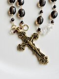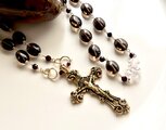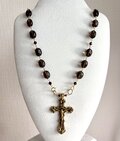 大きなクロスとスモーキークォーツとガーネットのRネックレス