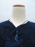 本藍染織りと編みのアクセサリーです。 糸は綿100%で反物を作る時に出る残糸を使っています。 石は出雲石です。 片方の紐の長さは42cmです。 日本製