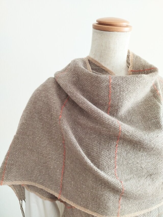 くぬぎ&茜染め/オーガニックコットンxウールxアルパカストール