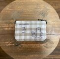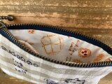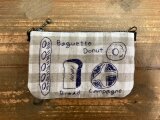 上質の麻に濃紺の糸でパンを刺繍した小銭入れです。