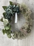 ユーカリやアジサイを合わせたレクタングルリース。