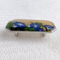 アクリル絵の具で花や葉を少しずつ描き、レジンを上から流して硬化させる。硬化したレジンにまた、アクリル絵の具で花や葉を描き、レジンを流して硬化させる・・・これを何度も繰り返して、作品を完成させます。繰り返す回数は作品の大きさや描く物によって違いますが、通常の大きさ(4㎝×3㎝)であれば7、8回です。