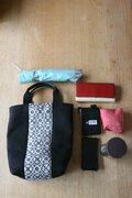 スウェーデン製の糸で手織りした布とブラックの帆布を合わせてトートバッグに仕立てました。