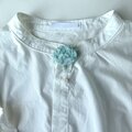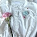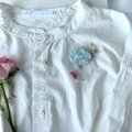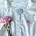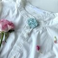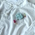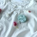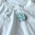 とても繊細な色のブローチですが、白シャツや紫色など、やわらかい色味とのブローチコーディネートにもぴったりかなと思います。