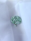 "Asatsuyu" 朝露 /草木染め糸の静穏な白緑色のオーバル型 刺繍ブローチ
