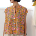 ★インドのハンドブロックプリントコットン生地で仕立てたブラウス。
