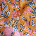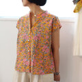 ブロックプリント前開きコットンブラウス【イエローフラワー】