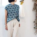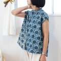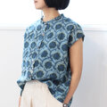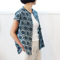 ★手染めインディゴの風合いが美しい、インドのハンドブロックプリントコットン生地で仕立てたブラウス。