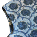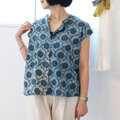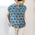 ブロックプリント前開きコットンブラウス【インディゴフラワー】