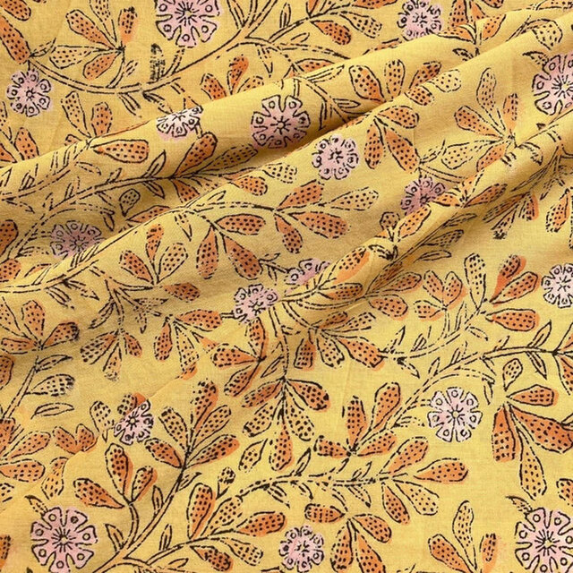 インド ブロックプリント生地 [50cm単位切売]イエローフラワーXイエロー地b SK 花 ファブリック IF0271