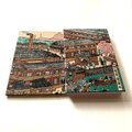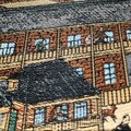 木版画特有の線描と色調の魅力を損なうことなく、桐生織の高い技術によって織り成されています。緻密に制御された経糸と緯糸が、建築の質感、人々の動き、遠景の山並みに至るまでを立体的に再現。布の持つ温かみと、織物ならではの奥行きが、原画とは異なる新たな芸術性を生み出します。