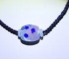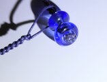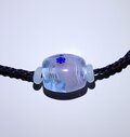 紐を通す穴のところが白っぽく見えます。とんぼ玉を制作する方法上、スレンレス棒のところがこういう見え方になります。