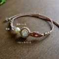 ロウをコーティングした蝋引き紐で天然石を編みこんでます。接着剤など使用しておりません。無理やりこじ開けたりすると石が外れる場合がございますのでご注意願います。