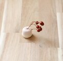 釉薬の色が冴える白い陶土を丸めて制作した小さな花立てです。