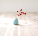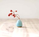陶土の小さなぷっくり花立て 水色釉薬 * ドライフラワー付き