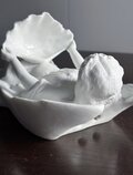 ビスク 花冠 天使 ベニティエ 聖水盤 h23.5cm フランス アンティーク 0502245