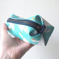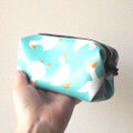 アヒル達が可愛らしいブルーの合皮ポーチです
