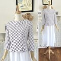 ボートネックのコットンブラウス『ドット柄・水玉・七分袖・ボトルネック』