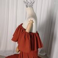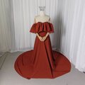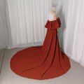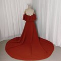 人気上昇!パーティードレス テラコッタ色 オフショルダー ロングトレーン 編み上げ 前撮り