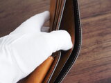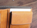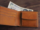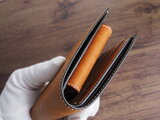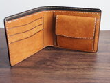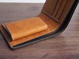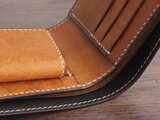 構造としては定番系の2つ折財布になります。全てのパーツを革素材で製作しているので一般的な2つ折財布に比べ厚み、重さがそれなりにあります。カードポケットを含め使いはじめは少し硬さを感じると思いますが一月程で馴染むようになってきます。