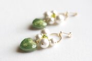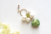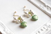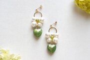 レジンアート ハートとコットンパールのピアス〈若葉の頃〉