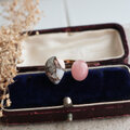 天然石コッパーピンクオパールとピンクグァバクォーツのフォークリング 金アレ対応