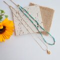 天然石ターコイズのネックレスとドロップネックレスの重ねづけ2点セット。