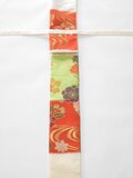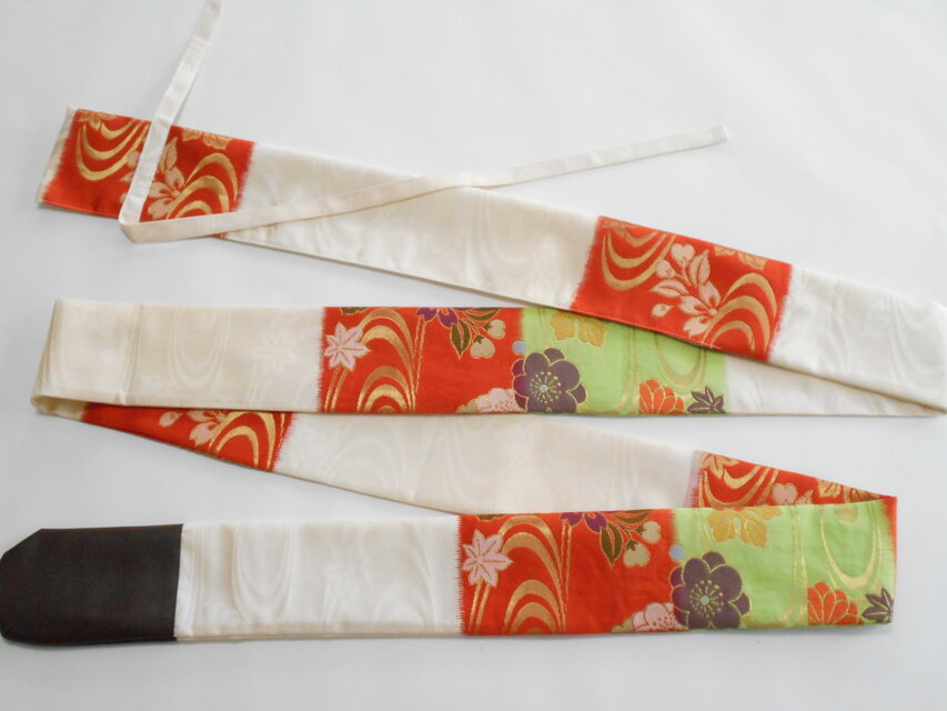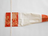 オレンジと黄緑色の部分は帯のように織り出された柄です。