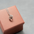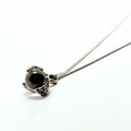 丸いクォーツに、葉やつるを思わせる装飾を重ねたペンダントネックレスです。
