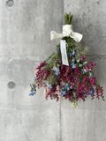サイズ約28×18㎝長もちするスターチスの仲間にスモークツリーや水色が差し色のデルフィニュームを合わせました。ドライ好きやピンク好きにはたまらない。花瓶に合わせてもいいですし、壁に可愛くかけていただいてもおすすめです。明るい色がお部屋をもうワントーン明るくしてくれますように。室内の冷暗所が1番長く色を保ちますが1番はお客様の目に留まるところがベストだと思います。