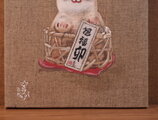小さなモチーフを並べたアトリエの棚から、その年の干支に因んで描いた作品です。