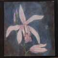 「白花紫蘭」2025年、絵、8..5×9.0㎝、紙、水彩画、額無料(中古の額です。本作品専用ではありませんがご購入いただいた際は無料でご覧のままの額に入れて発送いたします)