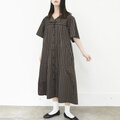 【完全一点物】ギャザーワンピース(ベージュストライプ)軽い素材のワンピースで本格的な春が待ち遠しい程です♪ ボタンも可愛くてびっくりでした! 細部まで拘って作られているのがとても分かるワンピースでした^^