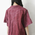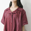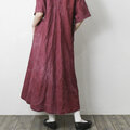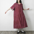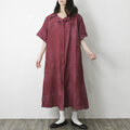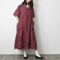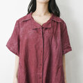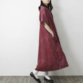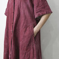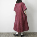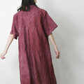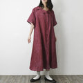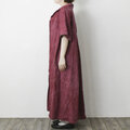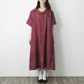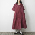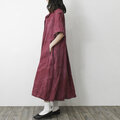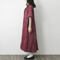 【完全一点物】半袖オープンカラーマーメイドフレアワンピース(レッドリネン)