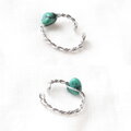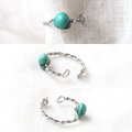 ツイストしたサージカルステンレスワイヤーにグリーン系のタンブル形状のターコイズを一粒組み込んだ、シンプルでナチュラルな雰囲気の「片耳用」イヤーカフです。