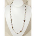 貝パーツ(マザーオブパール)と本水晶、トルマリン、アメシスト、ローズクォーツ、スモーキークォーツのロングネックレス