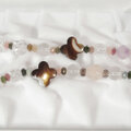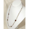 照りの綺麗なフラワーカットの貝パーツ(マザーオブパール、茶蝶貝)と、高い透明感と綺麗な輝きの本水晶(多面カット)、多彩な色合いのトルマリン(マルチカラー、多面カット)、コロッとした可愛いアメシストとローズクォーツ、上品な輝きのスモーキークォーツ(多面カット)の天然石ロングネックレスです。