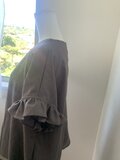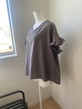 グレーリネン生地でオフショルダーフリルプルオーバーを製作しました。