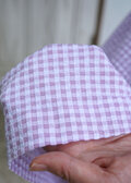 \夏に最適なサッカー調素材。可愛らしく、元気の出るローズピンクのギンガムチェックです。/