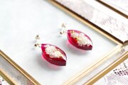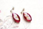 こっくりしたルビーレッドの背景にお花とパール、ブリオンをあしらった可憐なピアス。