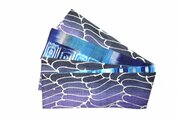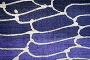 片面、ヘンプ(手織りの麻布)にろうけつ染めで描かれた波柄、紫紺のグラデーション