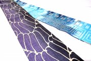片面、タイシルク、水色、紺、グレー絣柄、渦巻き模様