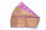 落ち着いたベージュのコットンと、ピンク紫系のタイシルクの半幅帯です。
