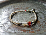 アフリカ出土瑪瑙とミゾーラムカーネリアン、インディゴブルービーズ、oldチンシルバー&オリッサブラス、ホワイトビーズなどを繋いだブレスです。