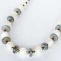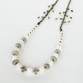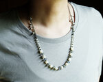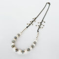 メタルビーズとブルーと白の組み合わせがシンプルながら存在感のあるネックレスに。