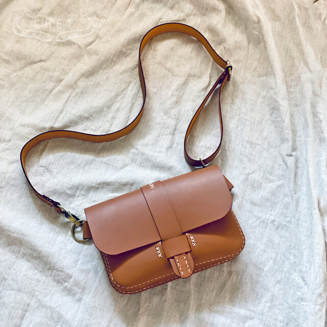 レザーショルダーバッグ、ショルダーバッグとして斜め掛けしたり肩から掛けたり、ウエストポーチとして腰辺りに付けたり、