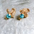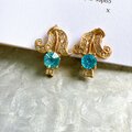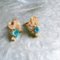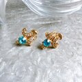 ライトブルーのカットグラスが美しいゴールドトーンイヤリング。ブリリアントカットされたカットグラスが光反射で輝きを放ち、クリアなラインストーンが華やかさを加速させます。