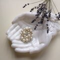 色々なイメージが重ねられるパールを使って、古来美しいもののたとえであり続けた雪月花のすべてをひとつのブローチの中に表したブローチです。