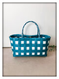 ★爽やかなブルーグリーンと白を組み合わせた、シンプルなギンガムチェック柄のプラカゴトートになります。