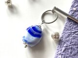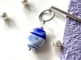 青と白のマーブル模様のとんぼ玉でかんざしを作りました。